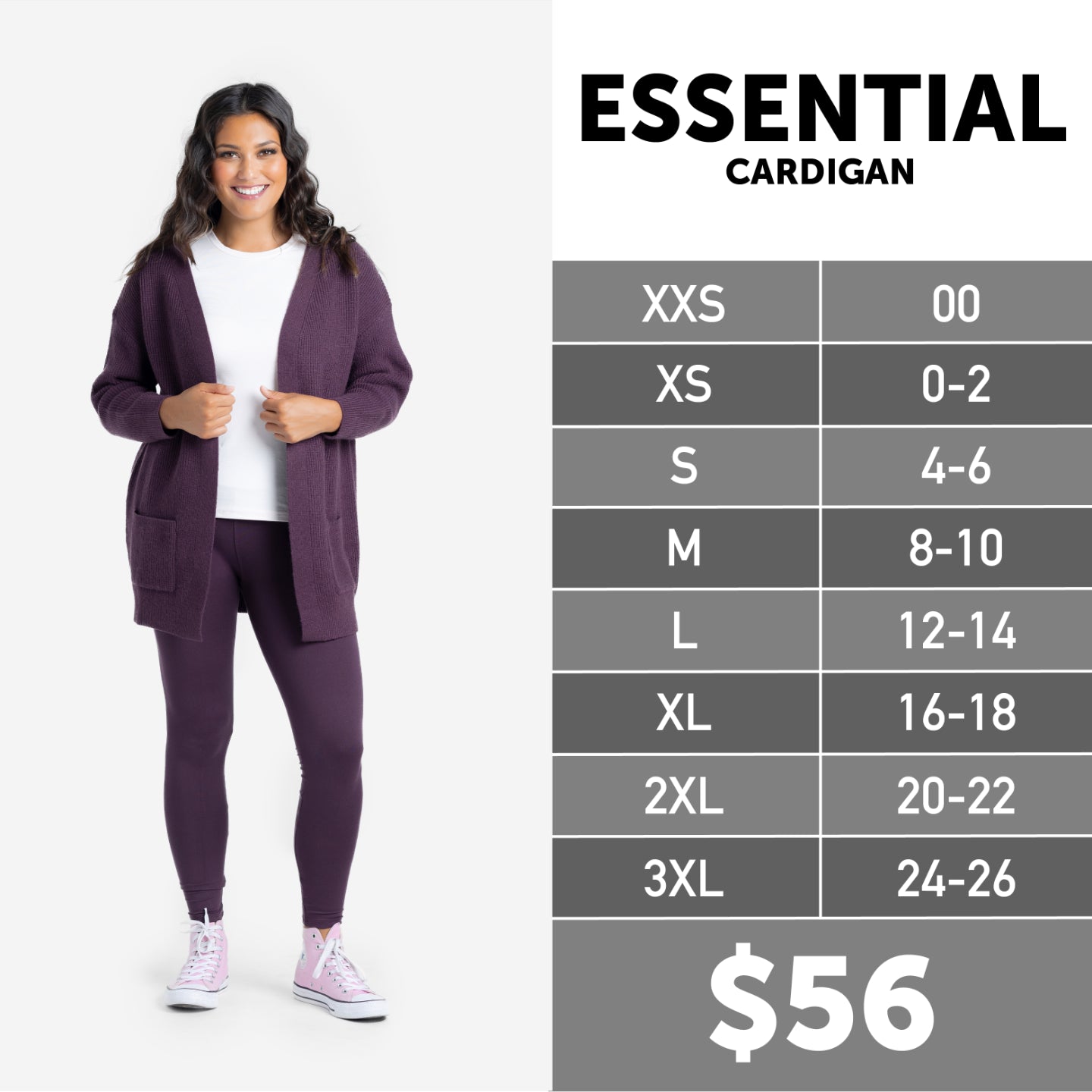 Essential Cardigan Size Chart